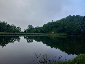 | 幻想的な霧の朝。 流れ込みからの水量は多く、池の水が対流してるのか?昨日より濁ってるな・・・ めちゃくちゃ涼しくて寒い位だ。。。 6:00から7:00までの予定で釣り開始! |
