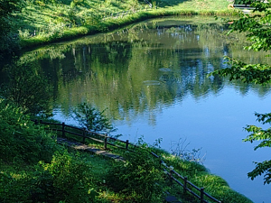| 今日は手すり付きの橋のある南東側の流れ込み付近でスタート! 早速イワナ、ニジマスが掛かる^^ イワナは足元、ニジマスはやや沖でヒット。 昨夕同様ほとんどがあまり警戒している様子なく水面に小さなライズリングを作りヒットする♪ |